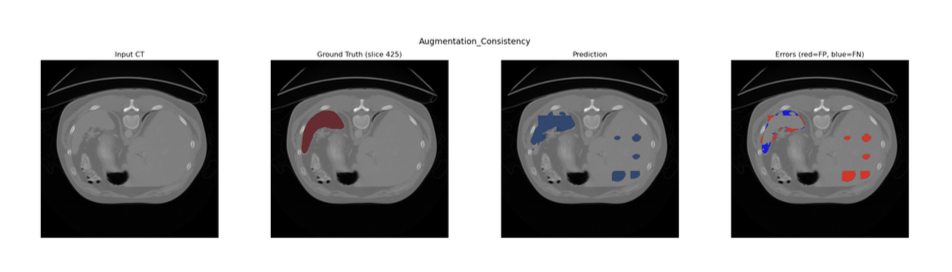 - Attention U-Net with Augmentation Consistency:Augmentation Consistency Technique (where volumes are variabily augmentated and passed through the same model for prediction) used to futher enhance model's performance